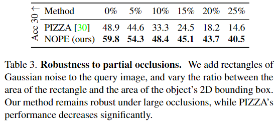 • Table 3는 앞선 실험을 통해 베이스라인 중 좋은 성능을 보인 PIZZA와 occlusion에서의 성능을 비교한 것입니다.