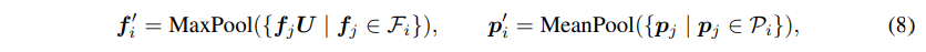 • (p’_i, f’_i) : 하위 집합 \mathcal{M}_i의 3차원 좌표와 feature