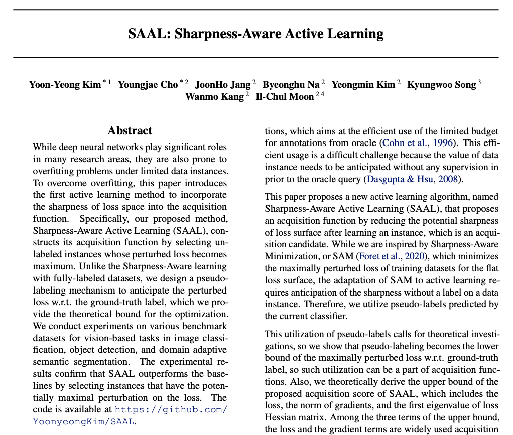 6 thoughts on “[ICML 2023] SAAL: Sharpness-Aware Active Learning