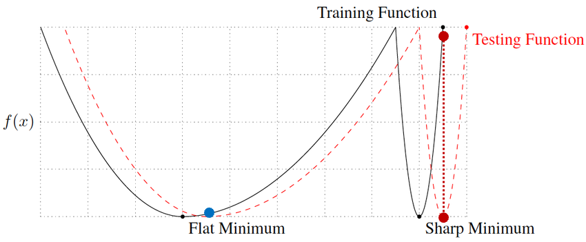 상단 그림에 Flat과 Sharp minima에 대한 예시를 확인할 수 있습니다.