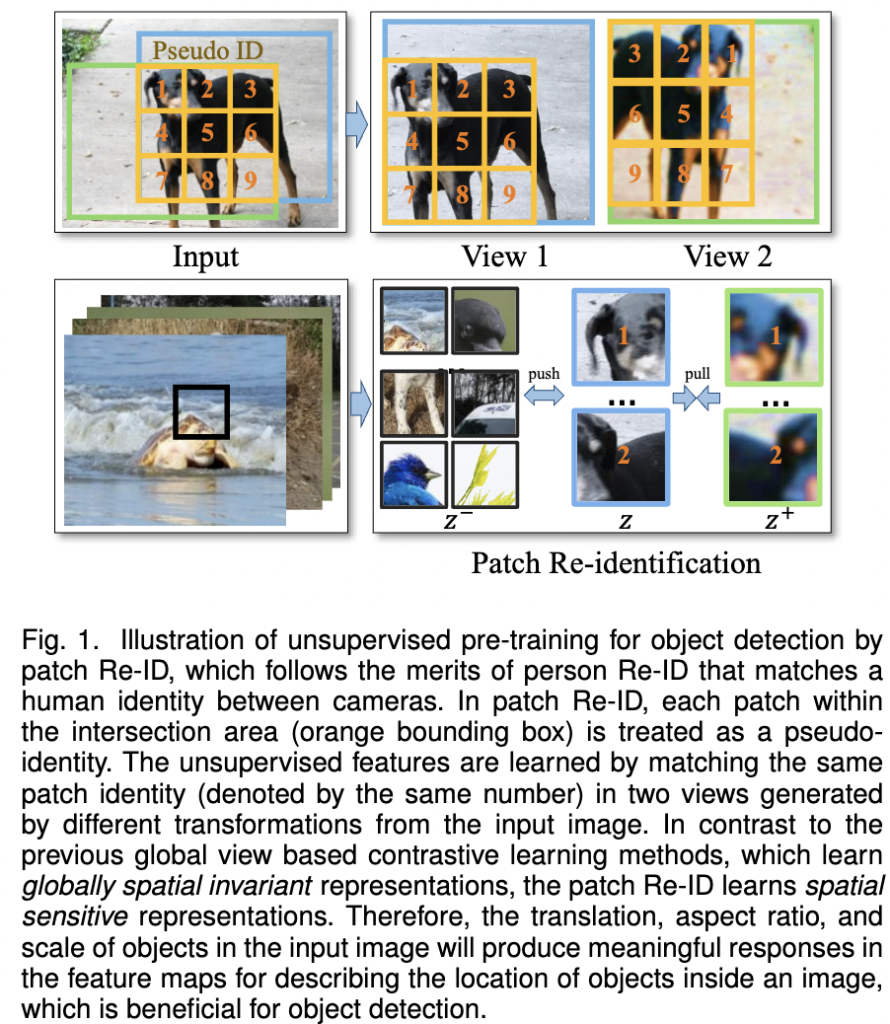 - 패치 Re-ID라는 자가 지도 사전 학습 과제를 제안하며, 이는 두 뷰 간 동일한 패치 ID를 일치시켜 region-level 구별되는 특징 맵을 학습하며, 이는 객체 탐지에 맞춤화되었습니다.