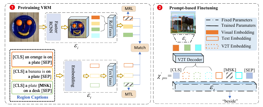 저자는 위에서 설명한 기존의 연구들이 VLM 모델을 새롭게 사전 학습 시키거나 너무 간단한 학습 파이프 라인을 채택하여 문제를 해결하고 있다고 주장합니다. 또한 그 과정에서 image-to-text 간의 discriminative한 matching을 많이 활용하는 데 이는 풍부한 representation을 capture하기 어려운 점을 지적합니다.