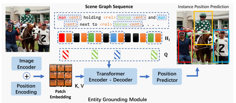 그래서 여기 Relationship Construction 에서는 Scene Graph Sequence를 통해 bounding box 좌표와 우리가 target으로 하는 데이터의 카테고리 단어로 변경하는 작업을 수행합니다.