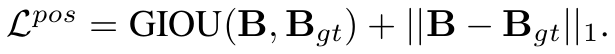 다음 task는 bounding box를 예측하는 task로 \mathcal{L}_{pos}가 있습니다.
