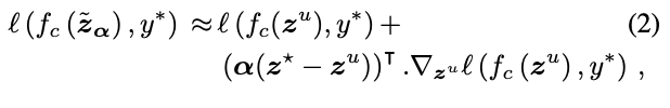 이제 새롭게 생성된 Feature \tilde{z_?}를 사용하여 모델이 예측한 레이블이 어떻게 변화하는지 구해야합니다. (수식 (1) 에 따르면 ? 값이 매우 작을수록 labeled 가 unlabeled feature에 미치는 영향이 매우 작아 Feature 변화로 인한 예측값 변화에 큰 영향을 미치지 않을 것이기에, 예측값 변화를 통해 불확실한 데이터를 찾을 수 있다는 것이 저자의 아이디어) 따라서 저자는 예측한 레이블이 얼마나 변화하는지를 정량화 하고자, pseudo-label의 변화와 interpolation 로 인해 발생하는 loss를 사용하였습니다. 이 과정에서 Loss의 변화를 계산하기 위해 저자는 테일러 전개를 사용하였습니다.