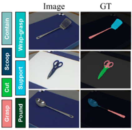 - affordance는 자전거의 안장, 칼의 손잡이와 같이 객체의 특정 영역을 의미하는 경우가 많으므로 객체의 부분을 인식할 수 있어야 함.