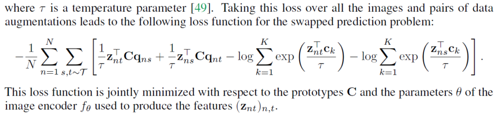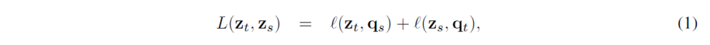 swapped prediction problem은 다음 loss함수로 학습하게 됩니다 :