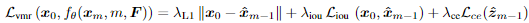 여기서 \lambda_{L1}, \lambda_{iou}, \lambda_{cd}는 하이퍼파라미터이고, L_{iou}는 일반화된 IoU loss이며 L_{ce}는 cross-entropy loss입니다.