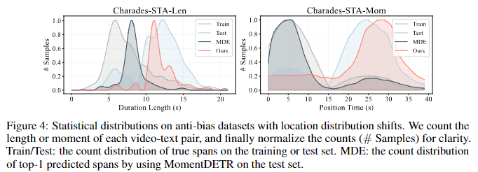 Figure 4. 는 위의 설명에 더해 Charades-STA 데이터셋의 분포 변화를 나타내는 그림입니다.