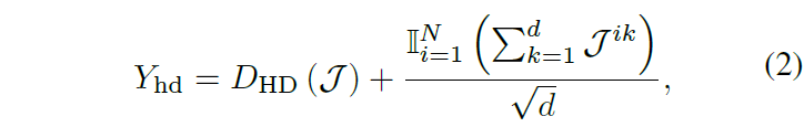 출력 Y_{hd}는 위 수식 (2) 연산을 거쳐 얻을 수 있으며 앞 term은 decoder D_{HD}의 output, 뒤 term은 각 비디오 클립에 대해 차원 축 summation 및 normalization에 해당합니다.