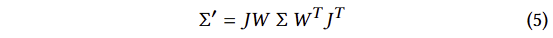 해당 가우시안은 블렌딩 과정에서 ?로 가해집니다. 그러나 렌더링을 위해서는 3D gaussian을 2D로 투영해야만 합니다. 여기서 viewing transformation ?이 주어지면 카메라 좌표계의 covariance matrix Σ’은 다음과 같이 주어집니다.