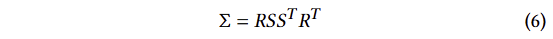 여기서 ?는 the Jacobian of the affine approximation of the projective transformation에 해당 합니다. 허나, 이전 연구에서 Σ’의 3 번째 열과 행을 무시한 2×2 variance matrix가 법선이 존재하는 평면에서 시작하는 것과 동일한 정보를 얻을 수 있는 것을 통해 아주 간단하게 3d gassuan의 covariance matrix Σ을 최적화가 가능합니다. 또한, 물리적인 공간에서는 positive semi-definite하기 때문에 이에 따른 제약을 겁니다. 3D gaussian의 공분산은 타원체의 구성을 설명하는 것과 유사합니다. 이를 기반으로 scaling matrix ?, rotation matrix ?을 통해 이에 대응 되는 corresponding Σ를 아래와 같이 구하는 방법으로 표현을 변경합니다.