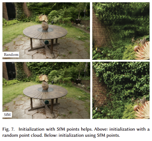 랜덤 초기화한 포인트에서 시작해도 좋은 퀄리티를 보여줌으로써, 해당 3d gussian의 3차원 표현 잠재성을 보임