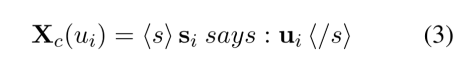 $X_h$의 경우, “speakers says:”는 context와 화자를 고려하여 유일한 토큰으로 사용되는데요. 그래서 다음과 같이 표현된다고 이해하시면 되겠습니다.