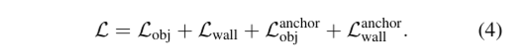 - L^{anchor}_{wall} : positive 물체와 벽 후보에 대한 anchor deformation 학습을 위한 supervision loss (Chamfer distance loss)