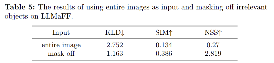 - Table 5는 배경 영역에 마스크를 적용하였을 때의 성능 개선 정도를 실험한 것으로, 객체와 무관한 시각 정보를 제거하므로써 성능이 크게 개선됨을 입증하였습니다.