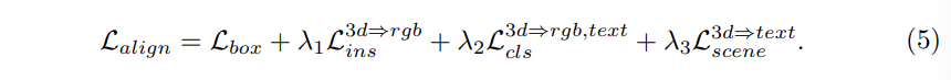 이런 instance 레벨에서의 alignment는 아직까지는 language 도메인에서의 클래스 정보는 고려하지 않은 채로 3D feature와 이미지 feature 사이만의 일관성을 강조하고 있습니다.
