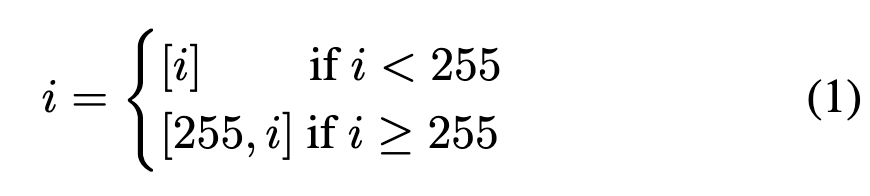 이론적으로 저자의 토큰 인덱스가 [0-390] 범위에 속하므로, source 코딩 정리에 따르면 토큰을 저장하는 데 필요한 최적의 비트 길이는 log2 391 = 8.611입니다. 따라서 이미지의 최적 저장 크기는 1.08 kB입니다. 그러나 실제로는 일반적으로 사용되는 데이터 유형이 최소 단위로 바이트(Byte)를 사용하므로(예: 1바이트(uint8) 또는 2바이트(uint16)), 토큰을 8.61비트로 저장할 수 없습니다. 토큰당 필요한 비트를 2바이트 이하로 압축하기 위해, 저자는 간단하지만 효율적인 인코딩 방법을 제안합니다. 먼저, 각 토큰 인덱스를 토큰의 빈도에 따라 할당합니다. 즉, 가장 빈번하게 사용되는 토큰은 인덱스 0에 할당되고, 가장 덜 빈번하게 사용되는 토큰은 인덱스 390에 할당됩니다. 그런 다음, 255보다 큰 토큰 인덱스를 다음과 같이 두 개의 요소로 분할합니다: