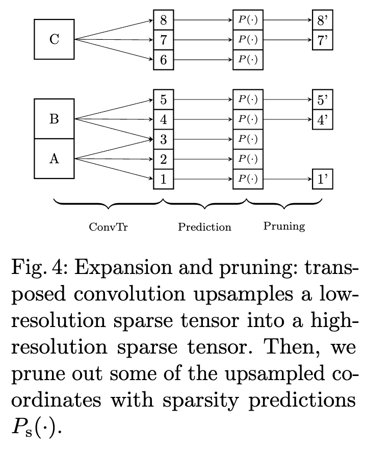 그래서 더 간단히 하기 위해, 해당 loss가 있는 score layer를 제거하고 대신 head의 classification layer에서 probabilitiy를 사용합니다. probability 임계값을 조정하지 않고 최대 Nvox voxel을 유지하여 sparcity 수준을 제어하며, 여기서 Nvox는 입력 포인트 수 Npts와 같습니다. 이 head에서 동일한 하이퍼파라미터를 share하면 프로세스를 더욱 투명하고 일관되게 만들 수 있기 때문에 이 방법이 sparcity 증가를 방지하는 간단하면서도 세련된 방법이라고 저자들은 주장합니다.