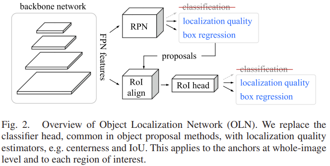 이번에는 바로 위 문단의 class-agnostic localization network, CLN에 대해 설명합니다. 예전 OLN 논문 리뷰에서 다음의 네트워크를 보여드렸습니다 (Figure 3)