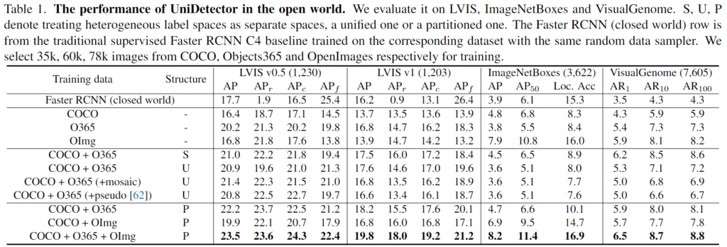 둘째로는 COCO를 활용한 closed-world 에서 Heterogeneous label space training이 어떻게 적용되었는지 궁금합니다 ㅎㅎ. Heterogeneous label space training가 서로 다른 데이터셋에 적용하기 위해 제안된 구조로 이해했는데, Table2의 실험에서는 해당 부분을 제외한 제안 사항에 대한 실험으로 이해하면 될까요..?