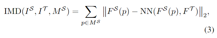- NN(F^{\mathcal{S}}(p),F^{\mathcal{T}}): source feature vector에 대한 target feature map에서 가장 가까운 이웃 벡터
