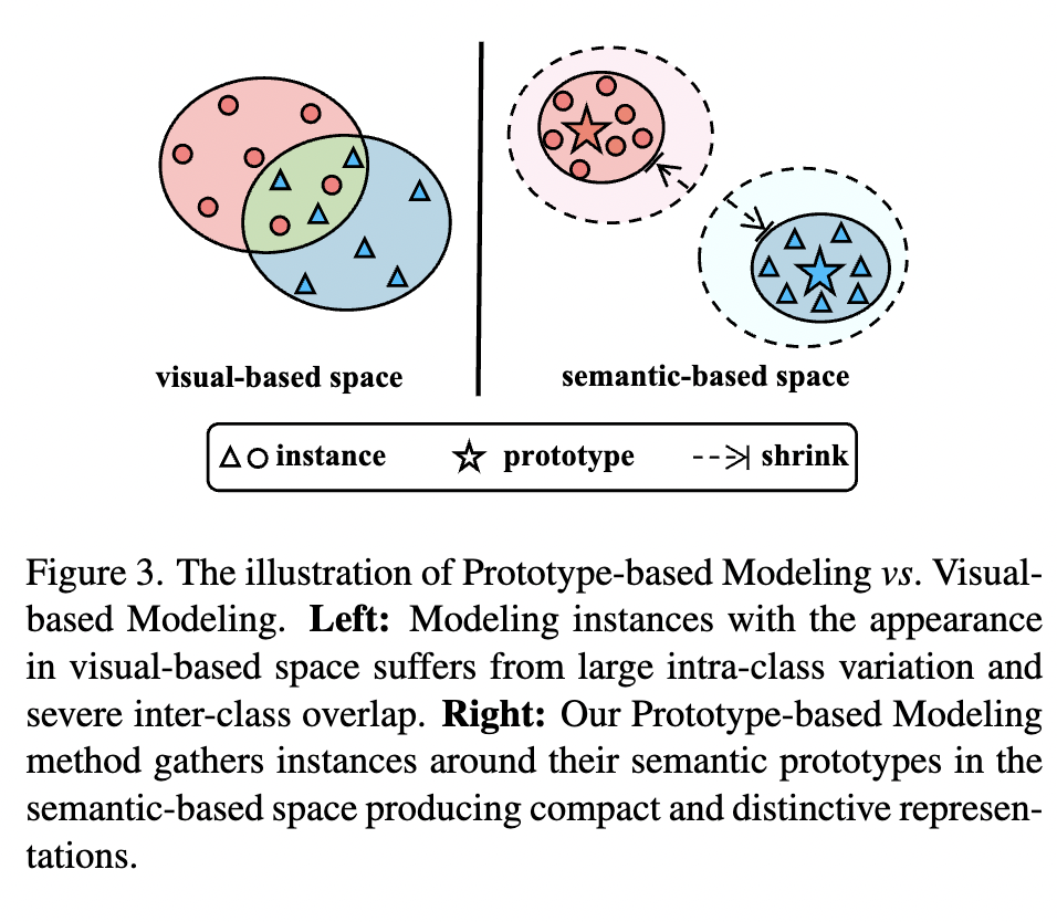 저자는 객체/술어를 모델링할 때 시각적 외형보다 semantics 특징이 더 효과적이다라고 언급합니다. 동일한 클래스의 객체/술어들은 시각적 외형이 크게 다를 수 있지만, 모두 대표적인 의미(semantics)를 공유하며, 이는 해당 클래스 레이블에서 쉽게 확인될 수 있습니다. 따라서 저자는 semantics space에서 객체와 술어를 모델링하여 클래스 내부 변이 및 클래스 간 유사성 문제에 대한 압축적이고 구별 가능한 표현을 설계하고 합니다.