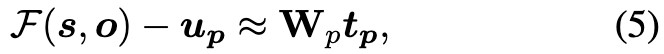 여기서 F(s, o) − up은 관계 표현 r로 정의되며, 이는 해당 술어 프로토타입 Wptp에 매칭되어야 합니다 .