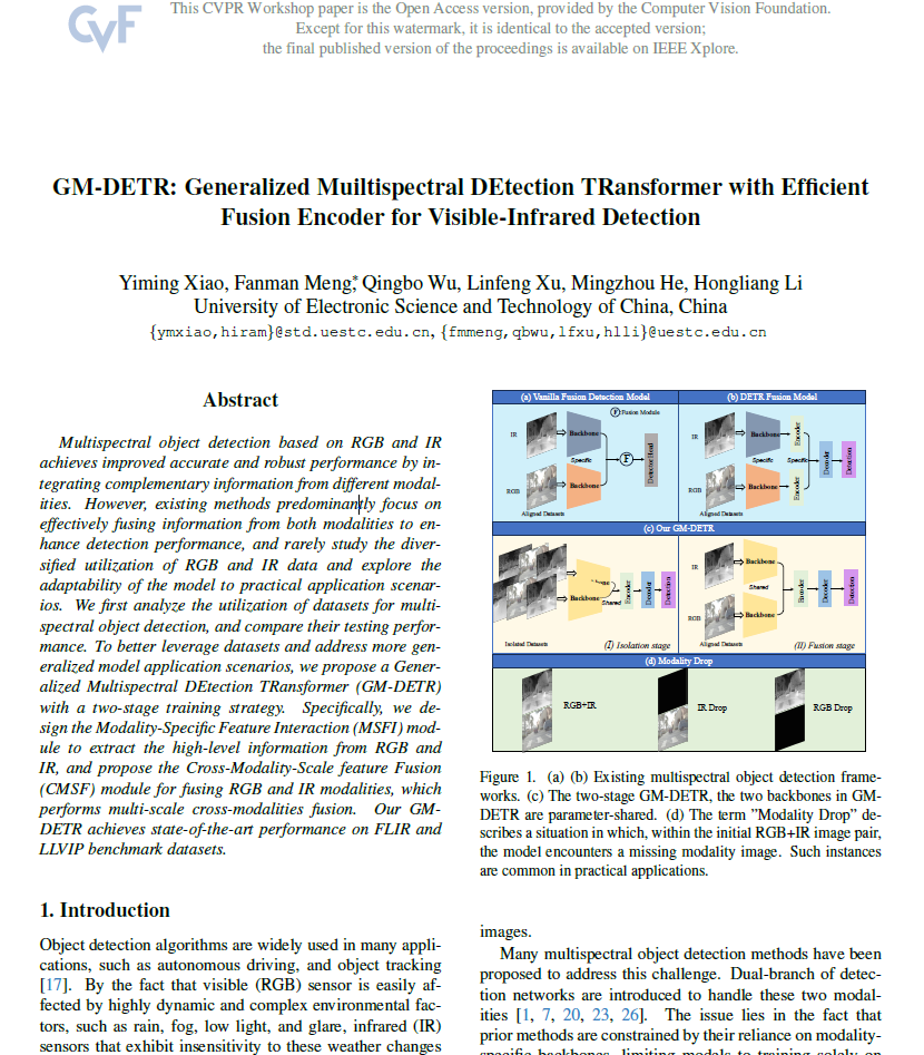 3 thoughts on “[CVPRw 2024] GM-DETR: Generalized Muiltispectral DEtection TRansformer with Efficient Fusion Encoder for Visible-Infrared Detection