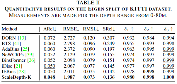Q2. RDE에 대해 ill-posed problem라고 언급했으나, 대다수의 깊이 센서들은 측정 거리가 제약되어 있습니다. 또한, 먼거리를 측정한다고 하더라도 KITTI처럼 0-80m로 깊이 값을 필터링하여 사용합니다. 너무 먼 거리에서 측정된 정보는 정확도가 떨어지기도 하고, 노이즈일 가능성이 있기에 센서의 정확도가 확보되는 거리까지만 필터링하여 사용하죠. 그렇기에 RDE의 스케일 값은 필터링되는 범위를 기준으로 학습을 진행된다면 큰 문제가 없을 것 같다고 생각이 듭니다.