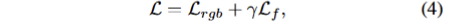 최종적으로 각 픽셀에 대한 색상 C와 특징 값 F_s를 volumetric rendering을 통해 계산합니다. (여기서 F_s의 s는 student에 해당) 해당 수식은 다음과 같습니다: