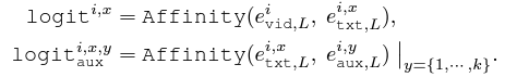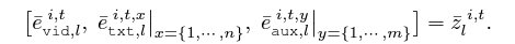우선 비디오와 텍스트, aux 토큰을 다시 아래 수식과 같이 쪼개줍니다.