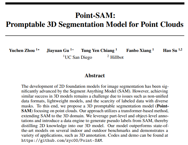 3 thoughts on “[arXiv 2024] Point-SAM: Promptable 3D Segmentation Model for Point Clouds