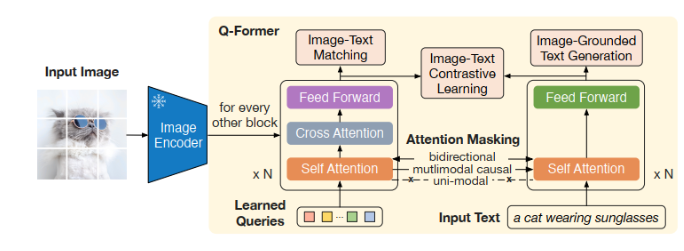 Q-Former의 역할은 입력된 프레임 임베딩의 중요한 정보를 query를 기반으로 추출하는 것이라고 합니다. 여기서의 query는 입력 텍스트를 의미하합니다.