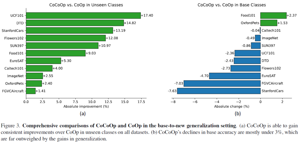 “CoCoOp’s Gains in Generalization Far Outweigh Losses in Base Accuracy”에서의 내용 중
