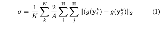$$ \mathbb{A}=\frac{2}{|\mathbb{H}|\cdot(|\mathbb{H}|-1)} \sum^{|\mathbb{H}|}{i=1} \sum^{|\mathbb{H}|}{i=1}\sum dist(y_i,y_j) $$