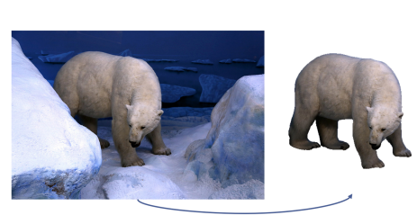 결론적으로 프롬프트 P는 이미지 문맥을 반영해 CLIP 유사도를 기반으로 가려져있는 객체를 어떻게 복원할지 가장 적절한 카테고리입니다. 아래와 같은 이미지로 예를들어보자면 입력 쿼리로 animal in this image가 들어왔을 때, 프롬프트를 만드는 과정에서 북극곰, 얼음 등등의 태그들이 자동으로 생성 되고, 그 중 CLIP 유사도가 가장 높은 북극곰이 최종 프롬프트로 설정됩니다.