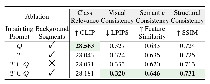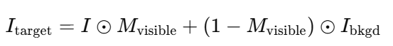 여기서I_bkgd는 깨끗한 배경을 나타냅니다. 이는 가시적 영역만 원본 이미지를 유지하고, 나머지 영역은 자연스럽고 문맥 없는 배경으로 교체하여 대상 객체를 명확히 분리합니다.