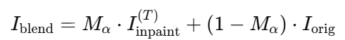 복원 과정은 대상 객체를 주변 장면에서 분리하는 것으로 시작됩니다. 이를 위해, 인페인팅 대상 영역 I_target을 아래와 같이 초기화 합니다.