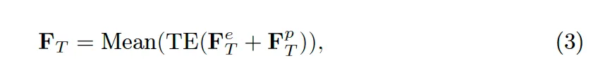 식3에서 F^e_T와 F^p_T에 해당합니다. 이후 Transformer encoder를 태운 후 transcription 내의 embedidng을 평균때려 최종 text feature를 생성합니다.
