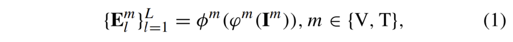 여기서 φ^{m}(·) 와 Φ^{m}(·)는 각각 m 모달리티의 CNN backbone과 Transformer encoder이며, {E_{l}^{m}}_{l=1}^{L}은 정제된 multi-scale feature map을 의미합니다. l은 scale의 index입니다.