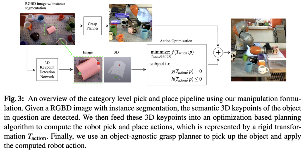 - function keypoint x_{function} : manipulation phase에서 o_in-hand의 특정 부분이 o_unattached와 접촉하게 될 위치를 지정합니다. 만약 o_in-hand가 작업에 없다면, x_function은 로봇 그리퍼에서 정의되고, 로봇과 o_unattached 간의 직접 접촉을 하게되는 것으로 나타냅니다. 위 이미지에서는 노란점 P3가 되게 됩니다.