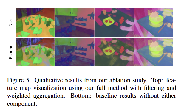 tab 5에서는 저자가 제안한 weighted aggregation과 filtering을 제거하고 수행한 실험 결과.