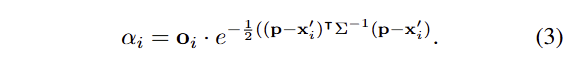 + 수식 3은 ocupancy o와 3D gaussian을 픽셀 영역에 사영한 2D gaussian의 연산으로 보시면 됩니다.