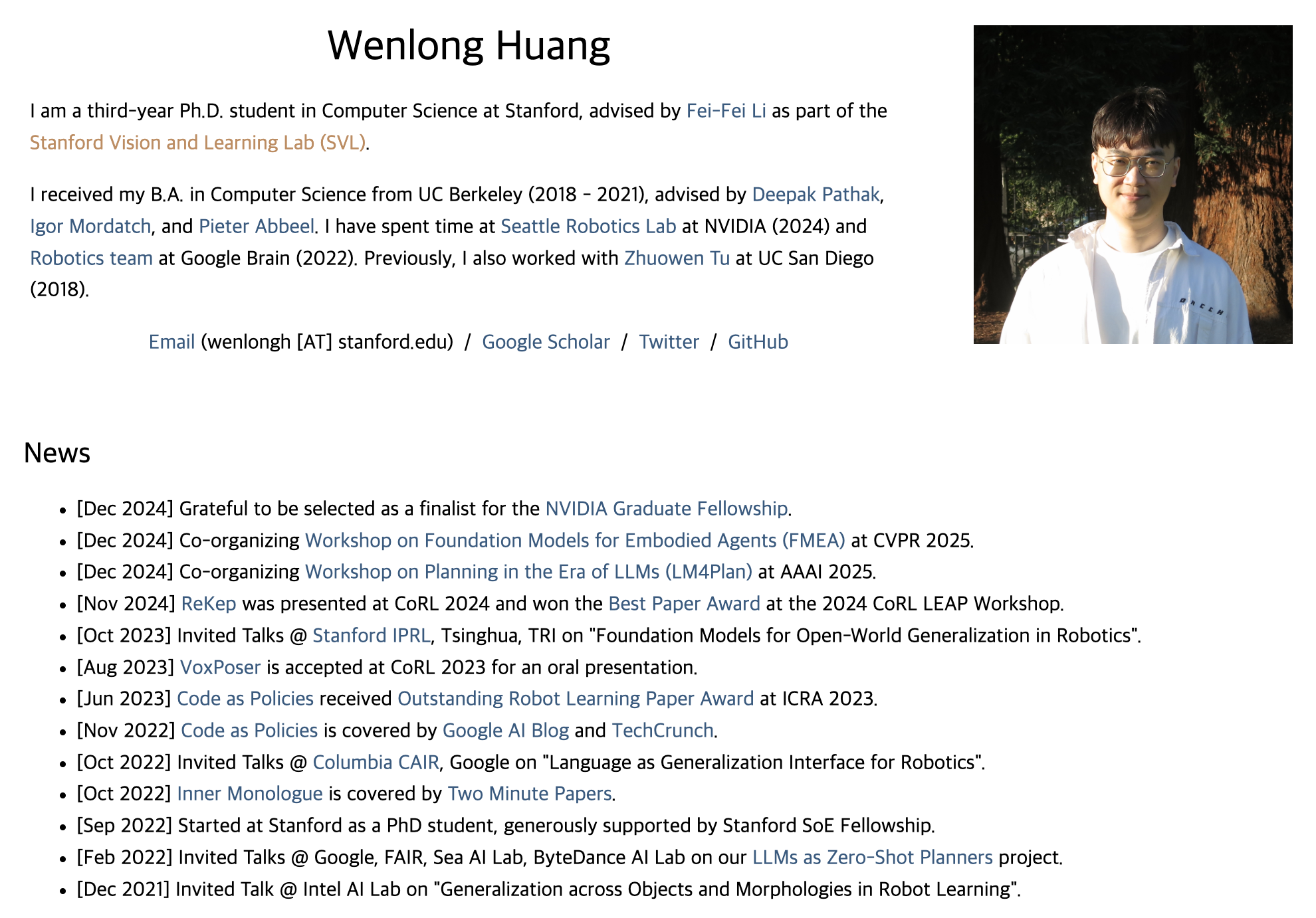 들어가기에 앞서, 우선 저는 몇 주전 KRoC 2025에서 서베이 논문 포스터발표를 하고 왔습니다. 해당 서베이 논문의 주제와 동일하게 저의 현재의 관심연구분야는 “LLM 및 VLM 기반 로봇 매니퓰레이션 제어 정책 연구” 입니다. 근데 이 ReKep 논문,, Wenlong Huang 이라는 분이 1저자이신데 심상치 않습니다. 위에 이 분 개인 홈페이지를 들어가보시면 더 자세히 알 수 있는데, 제가 서베이논문에 담았던 그 굵직한 랜드마크같은 논문들(Code as Policies, VoxPoser, Inner Monologue 등)에도 1저자를 담당하던 핵심인물이었습니다. 이 분야에 있어 한 획을 그을 것 같은데 좀 유심히 지켜봐야될 것 같습니다. 잡설이 좀 길어졌습니다. 논문 리뷰하도록 하겠습니다.