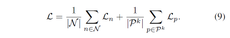 구체적으로, 저자들은 positive proposal의 IoU 범위 [a,b]를 t개 IoU간격의 K개의 그룹으로 나눠 (K = (a-b)/t ) foreground context가 다른 그룹으로 나뉘게 해서 각 그룹안에 있는 proposal 들은 유사한 context level을 갖도록 합니다. 이후 K개의 그룹의 prompt representation을 독립적으로 학습합니다. k개의 그룹에서, 저자들은 vivsual embedding을 추출하여 각 확률값인 {p}_{nc}을 구한 다음에 위의 3,4번 수식으로 동일하게 학습하여 positive loss {L}_{p}를 학습합니다. negative proposal도 이런 group에 속하게 되며 각 그룹에 대한 최종 loss function은 다음과 같이 구성되게 됩니다.