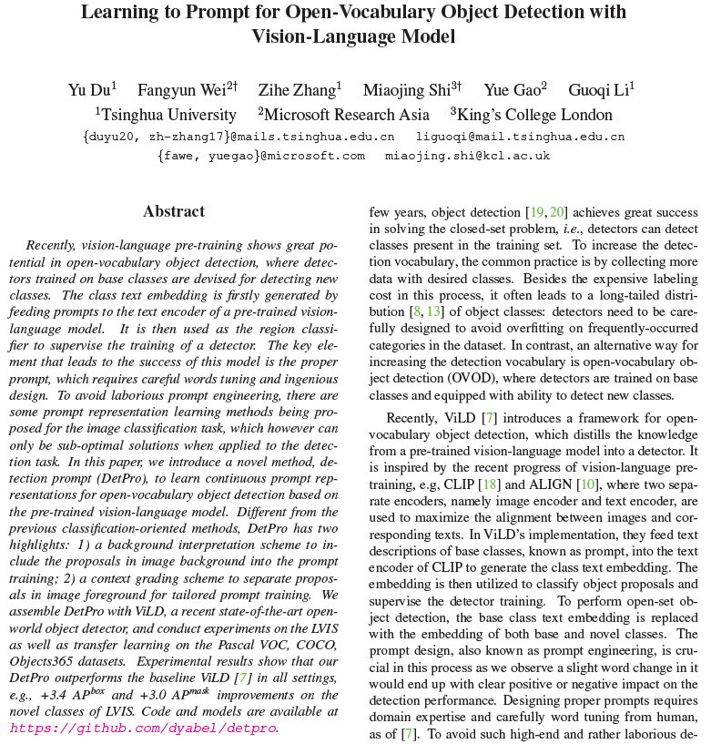 안녕하세요, 허재연입니다. 요즘에는 VLM과 OD의 결합으로 발전되고 있는 OVOD의 연구 동향을 팔로업 하고 있습니다. 제가 NLP쪽은 잘 몰라서 VLM의 prompt는 어떻게 사용하는지 항상 의문을 가지고 있었는데요, 마침 서베이 도중 OVOD의 prompting 관련 논문이 있어 읽어보게 되었습니다. 리뷰 시작하겠습니다.