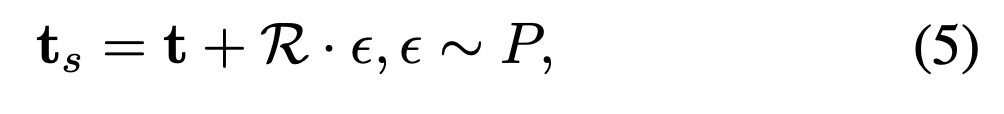 이전에 말씀드린대로 학습 과정에서 stochastic gradient calculations을 가능하게 하기 위해 reparameterization을 적용하였습니다. 식 (3)에서 정의된 기존 텍스트 임베딩 t을 기반으로, 확률적 텍스트 임베딩 ts을 다음과 같이 정의합니다.