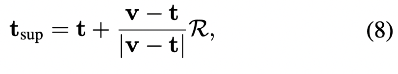 tsup은 주어진 텍스트 임베딩 t와 비디오 임베딩 v 사이에서 특정한 위치를 결정합니다. 이 위치는 비디오와 텍스트 간의 의미적 거리를 기반으로 계산되며, 아래의 수식을 통해 정의됩니다: