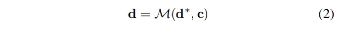 diff(\mathcal{E}(m), c)은 인코딩된 latent에 대해 sparse depth c를 이용해서 steer된 diffusion 과정을 수행하는 것을 의미합니다. \mathcal{M}은 기본 diffusion 모델인 Marigold에서 얻는 relative depth를 metric depth로 변환하는 과정이며, 식(2)와 같이 더 자세하게 정의할 수 있습니다.